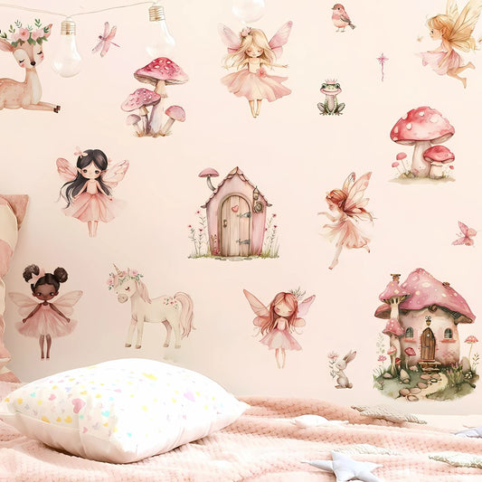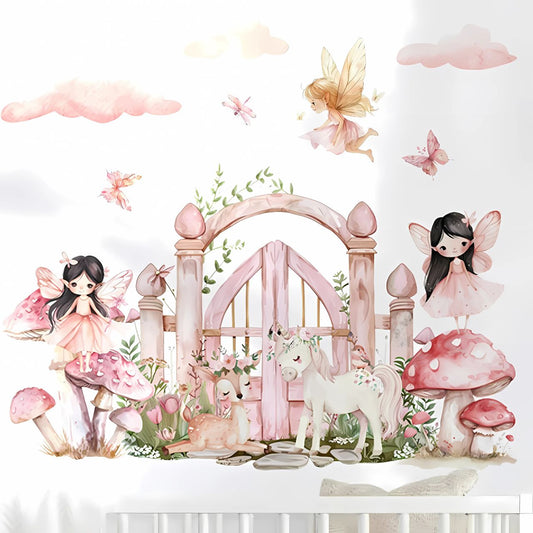 Fairy with Mushroom House & Plants Kids Wall Sticker
