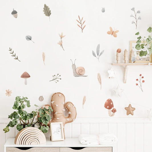 Boho Snail Mushroom Leaves Kids Wall Stickers