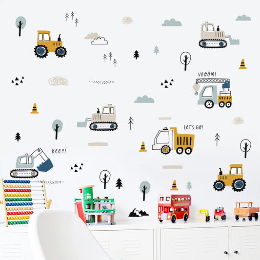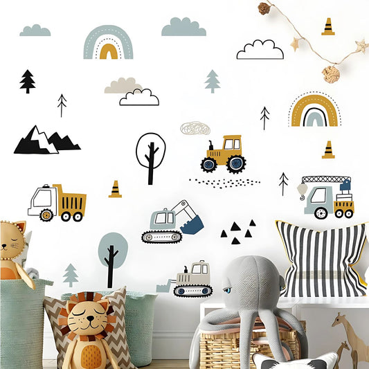 Hand-Drawn Cars & Cargo Truck Kids Wall Sticker
