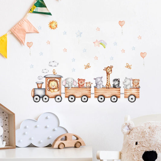 Cartoon Train Takes Animals to See the World Kids Wall Stickers