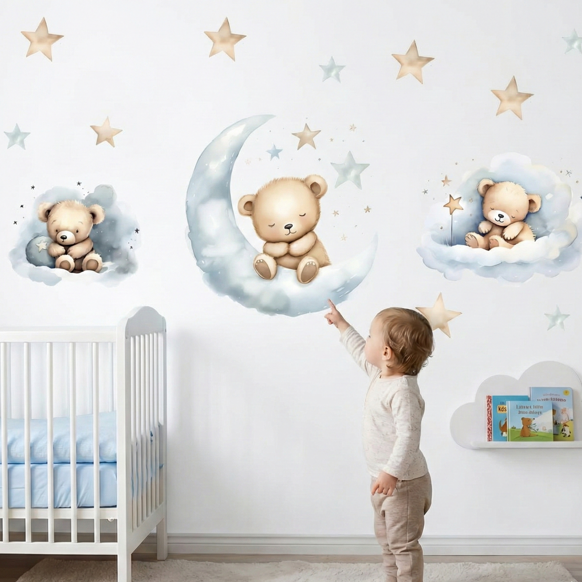 Add a cosy, bedtime feel with our Blue Teddy Bear with Moon Kids Wall Stickers. This cute, dreamy design is perfect for nurseries or sleeping areas, creating a soft and calming space.